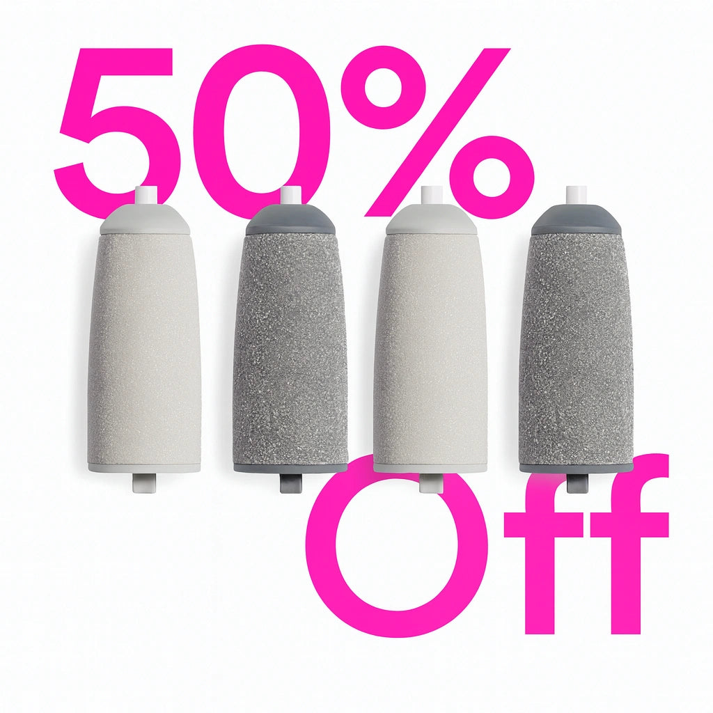 Con un set de repuestos tendrás rodillos suficientes para mantener tus pies suaves y sin durezas por hasta 6 meses.